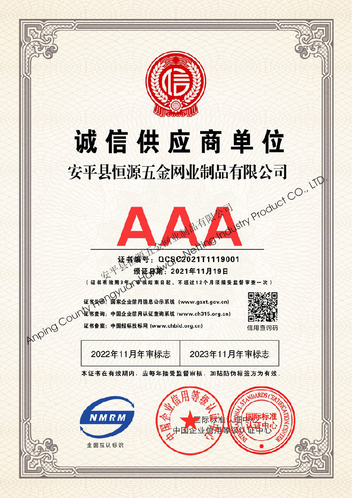 多年來,安平縣恒源五金網(wǎng)業(yè)制品有限公司堅(jiān)持“科技興企、質(zhì)量立業(yè)”的經(jīng)營理念和“誠心為本、客戶至上”的合作宗旨,優(yōu)化生產(chǎn)工藝,打造優(yōu)質(zhì)產(chǎn)品,提供完善的服務(wù),受到國內(nèi)外客戶的一致好評(píng),產(chǎn)品行銷全國各地,并出口美國、德國、韓國、日本、臺(tái)灣等國家和地區(qū)。